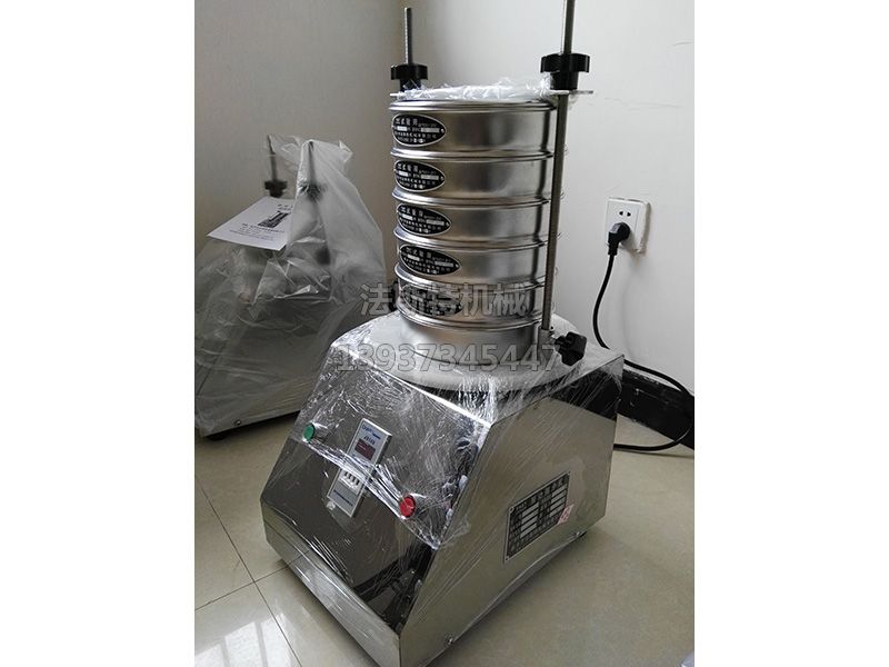 試驗(yàn)振動(dòng)篩通過振動(dòng)電機(jī)帶動(dòng)上部振動(dòng)盤振動(dòng),再通過振動(dòng)盤傳導(dǎo)至按放在振動(dòng)盤上部的國(guó)標(biāo)試驗(yàn)篩框,然后,把小于篩框孔徑的物料篩分至下層篩框,如此層層篩選,使每層試驗(yàn)篩內(nèi)留下相同粒度的物料,達(dá)到不同粒度的分離分選,并確定此物料的粒度組成。