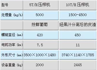 5T/10T雙螺旋壓榨機(jī)技術(shù)參數(shù):