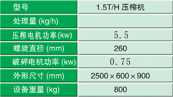 雙螺旋破碎壓榨機主要技術(shù)參數(shù):