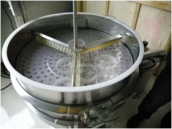 例如在面粉篩分中,有些細(xì)渣子卡在網(wǎng)孔中,在刮板旋轉(zhuǎn)推動的作用下,可以將雜質(zhì)推向出料口,自動排出,減少了堵網(wǎng)的發(fā)生;在固液分離作業(yè)中,能把各類漿液中的非溶性物質(zhì)迅速地清除從出料口排出,防止堵網(wǎng),提高篩分效率。